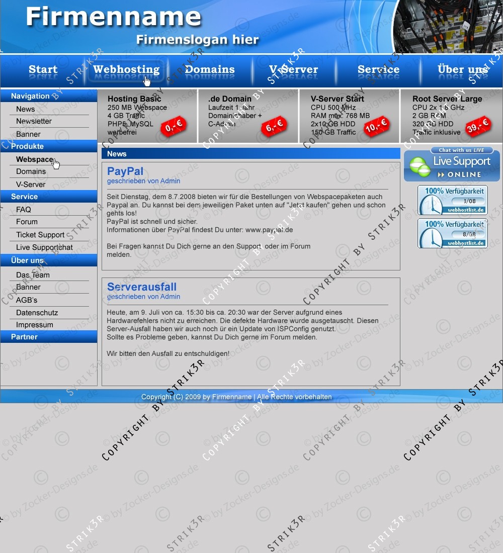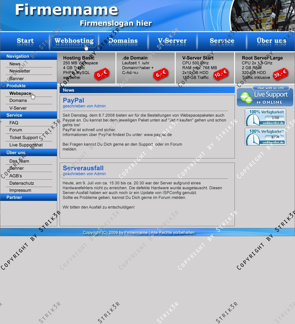 Hinweis: Hierbei handelt es sich nur um das Design, eine Anpassung an ein CMS-System ist nicht im Preis enthalten!