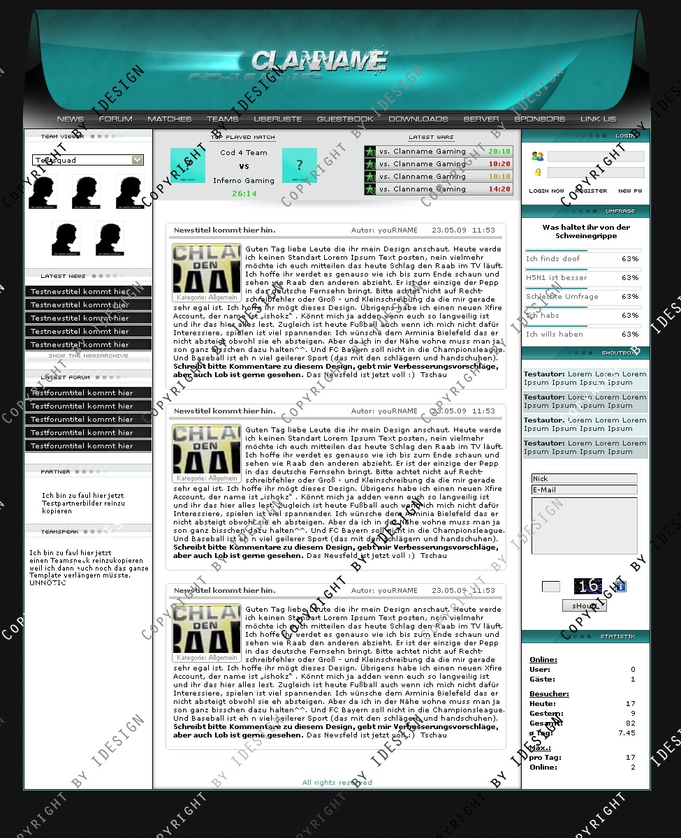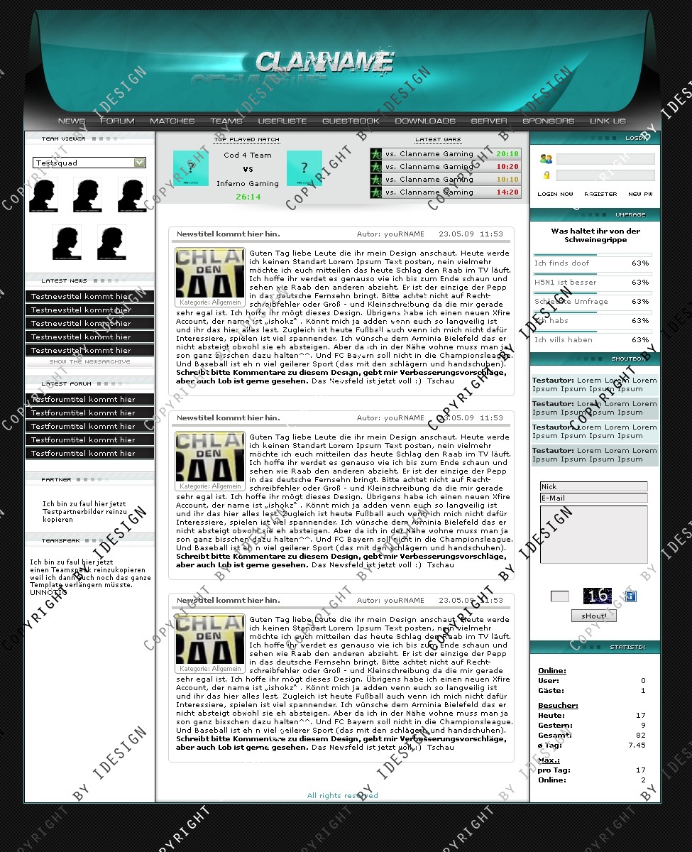 Du hast noch keinen Account auf ClanDesigns.de? Dann kannst du dich hier kostenlos registrieren!