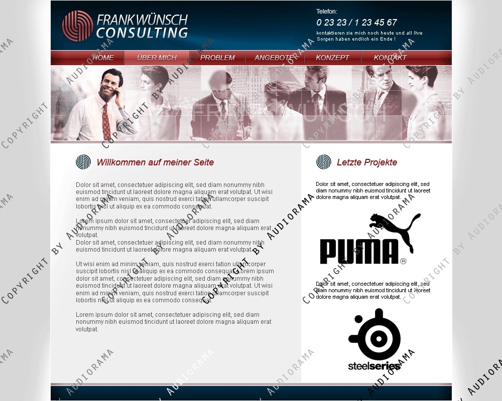 Hinweis: Hierbei handelt es sich nur um das Design, eine Anpassung an ein CMS-System ist nicht im Preis enthalten!