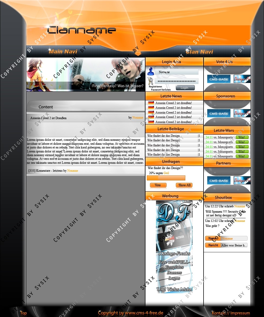 Du hast noch keinen Account auf ClanDesigns.de? Dann kannst du dich hier kostenlos registrieren!