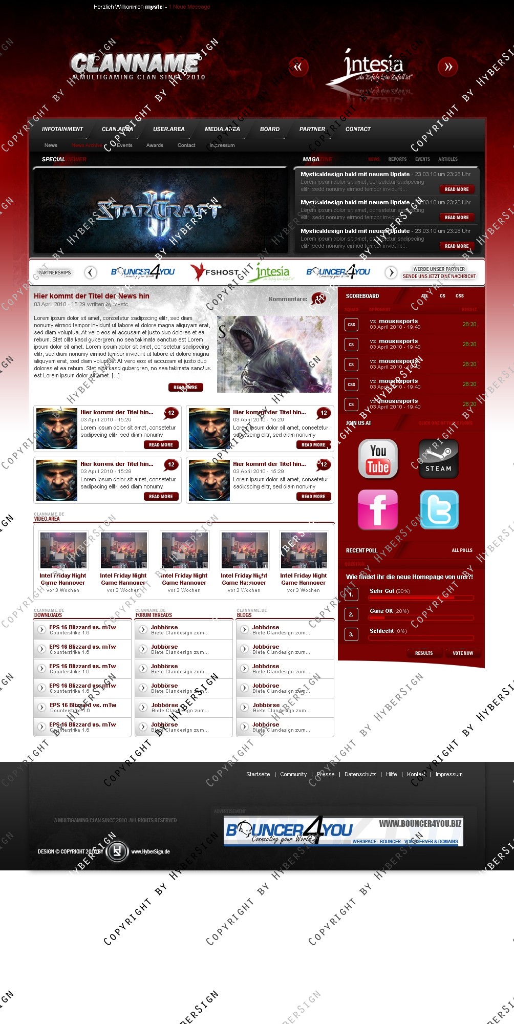 Ein sehr sauber aufgearbeitetes Clandesign mit moderner roter Farbgebung und modern aufgebautem Contentbereich.