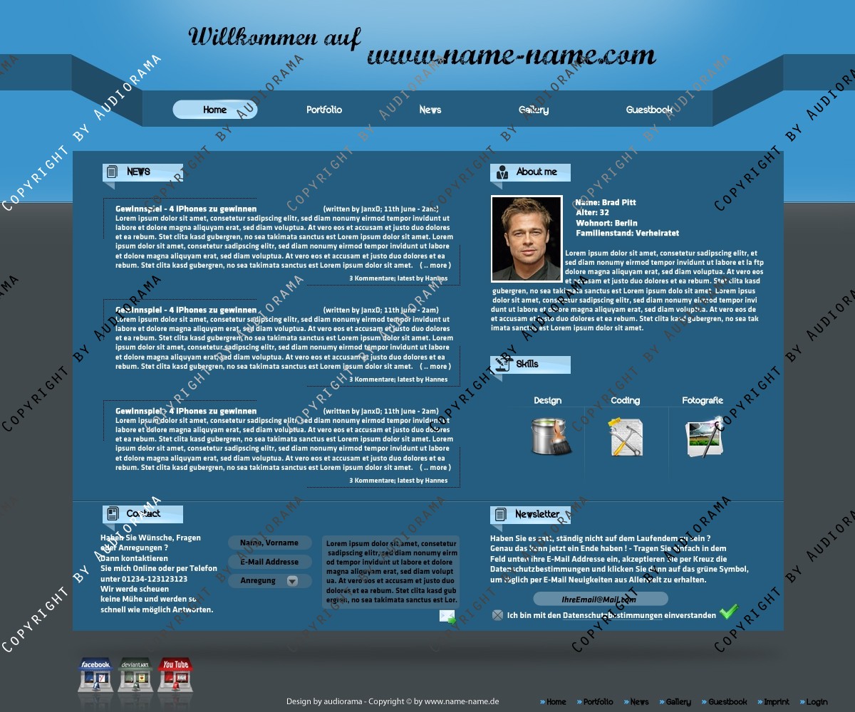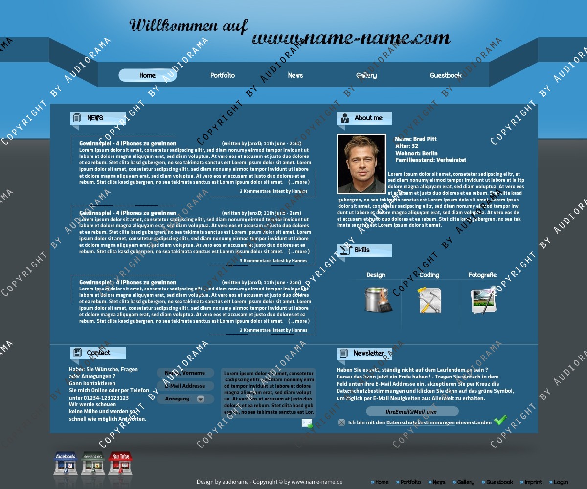 Hinweis: Hierbei handelt es sich nur um das Design, eine Anpassung an ein CMS-System ist nicht im Preis enthalten!