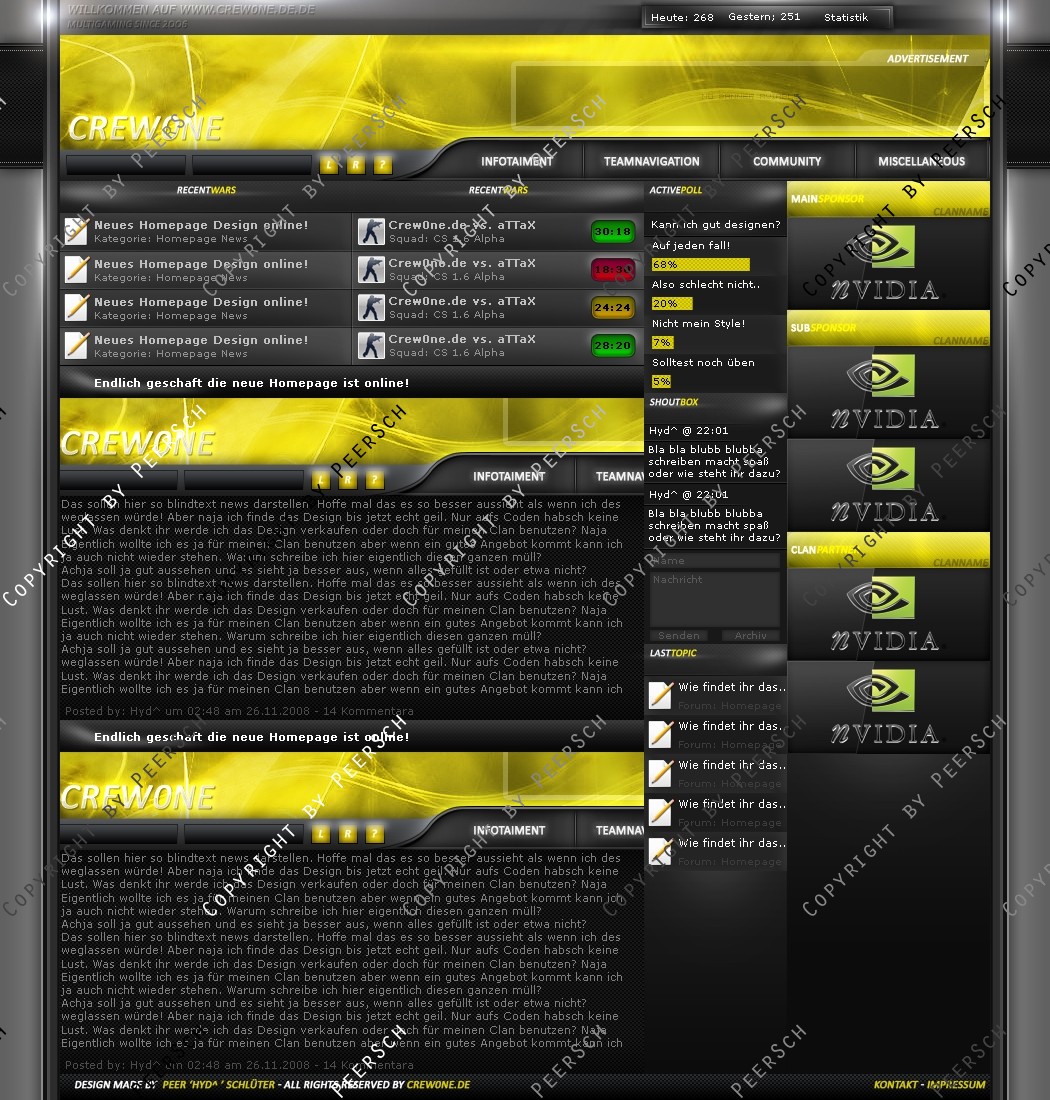 Was Sie hier kaufen ist lediglich die PSD Datei, gerne kann ich es Ihnen gegen einen Aufpreis von 13€ an ein CMS Anpassen, zur Auswahl stehen hierbei: webSPELL, Clansphere, Teklab, Devilz und andere CMS auf Anfrage ohne Aufpreis.