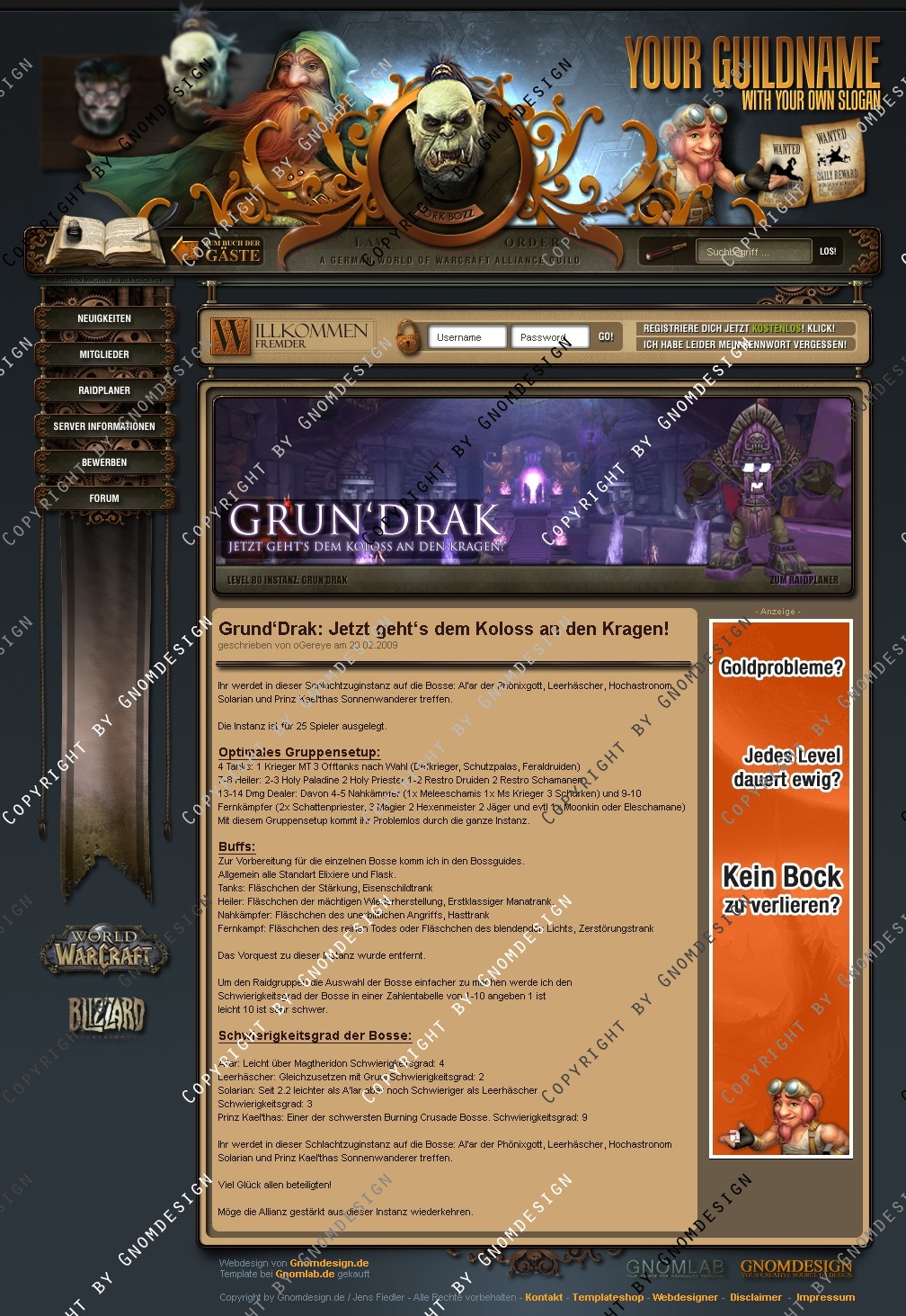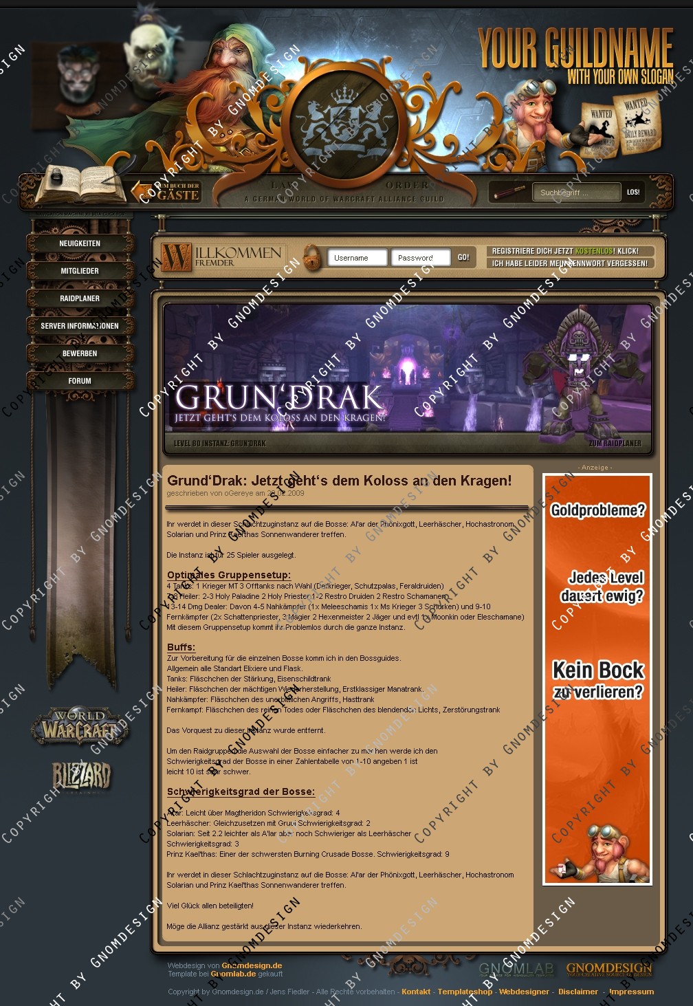 Wer ein einfaches aber schönes Gildendesign sucht, wird eventuell mit diesem Design glücklich. Die Ebenen sind in Ordner strukturiert und Schriften/ Texte leicht änderbar.