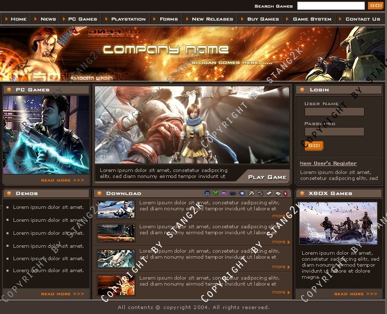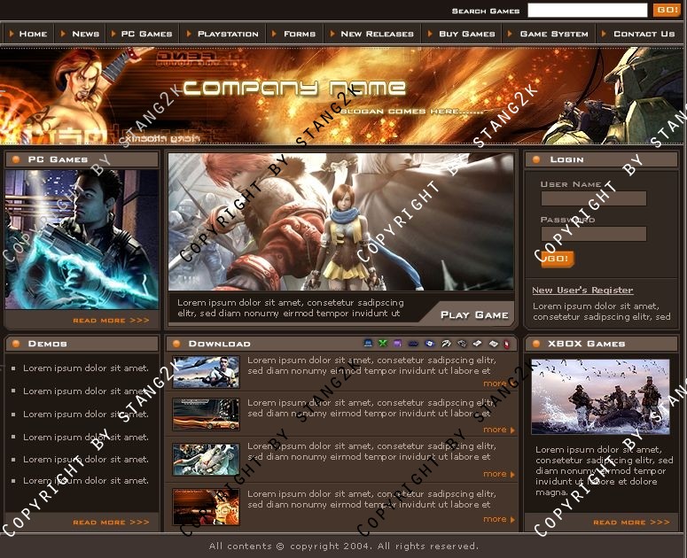 Dieses Design ist optimal für Gamercommunitys oder Clans. Das Design ist in braun und kann danke der mitgelieferten PSD und der Schriftarten nach eigenen Wünschen verändert werden.