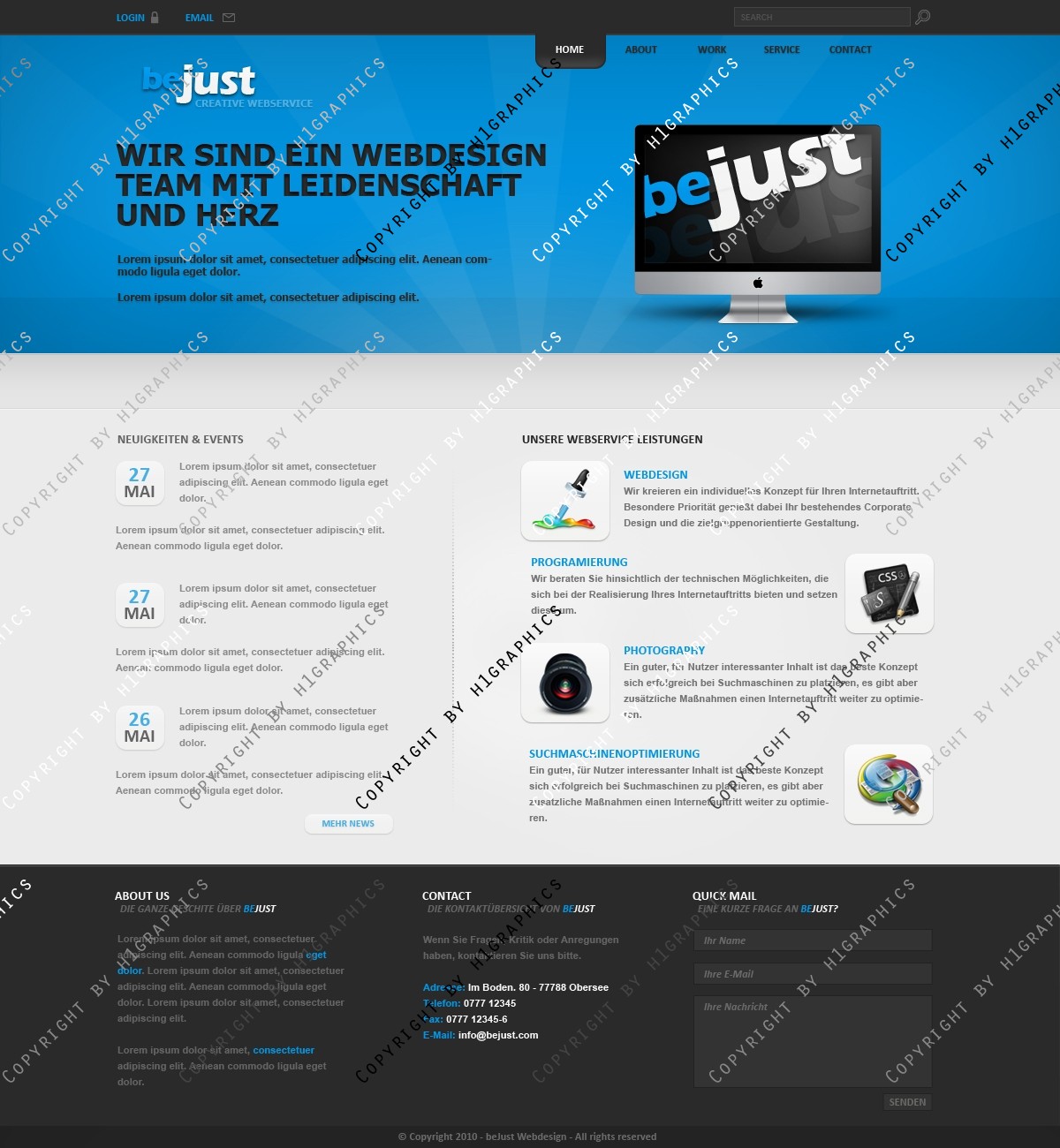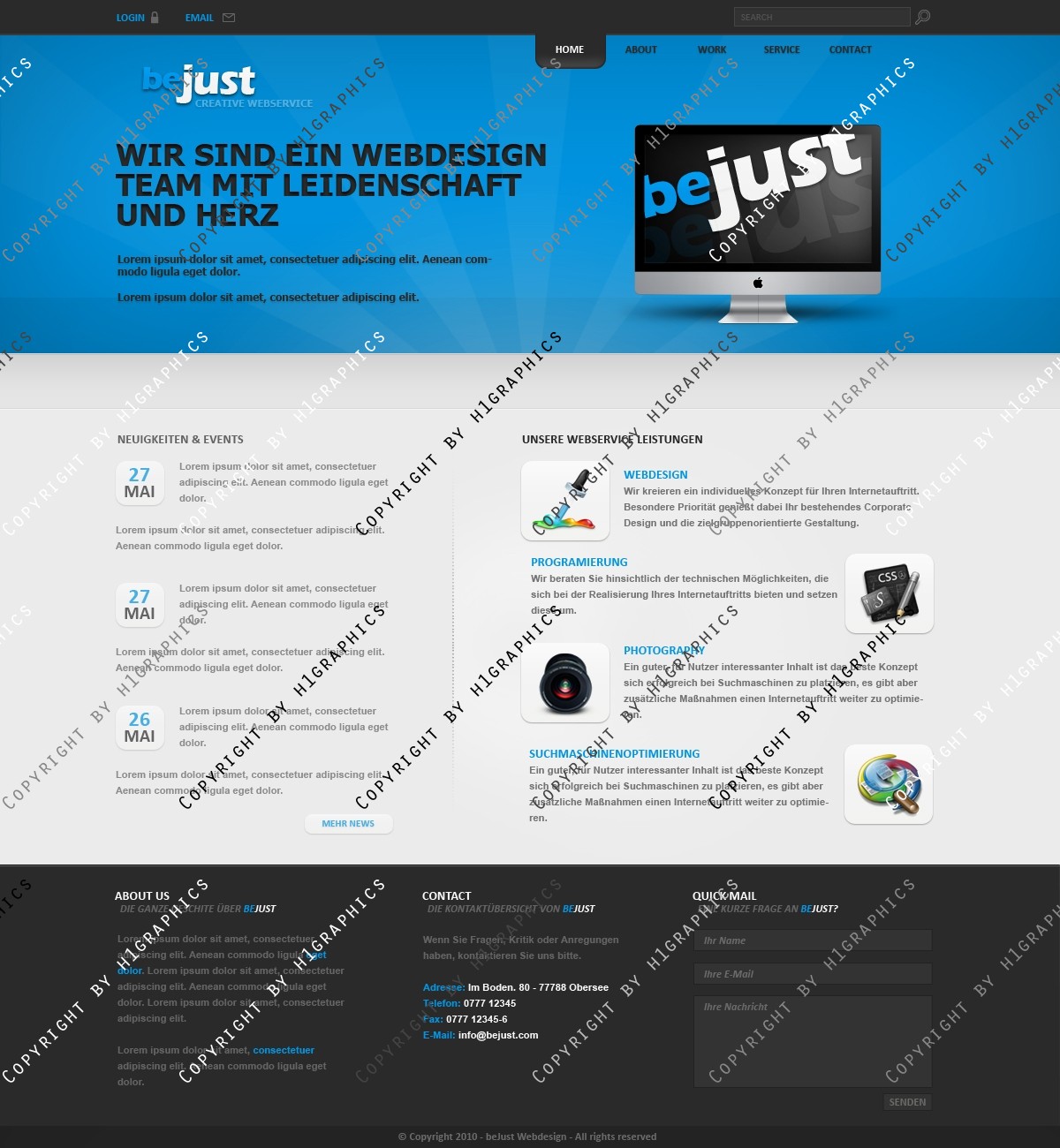 Hinweis: Hierbei handelt es sich nur um das Design, eine Anpassung an ein CMS-System ist nicht im Preis enthalten!
