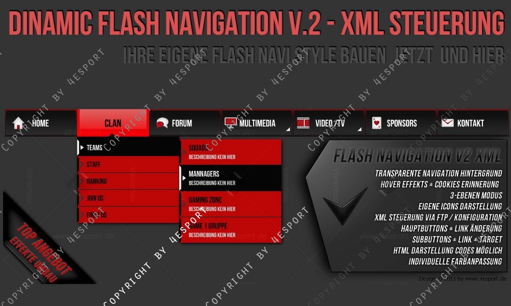 • Flash Animation (Buttons, Sub buttons, Hover Effekte)