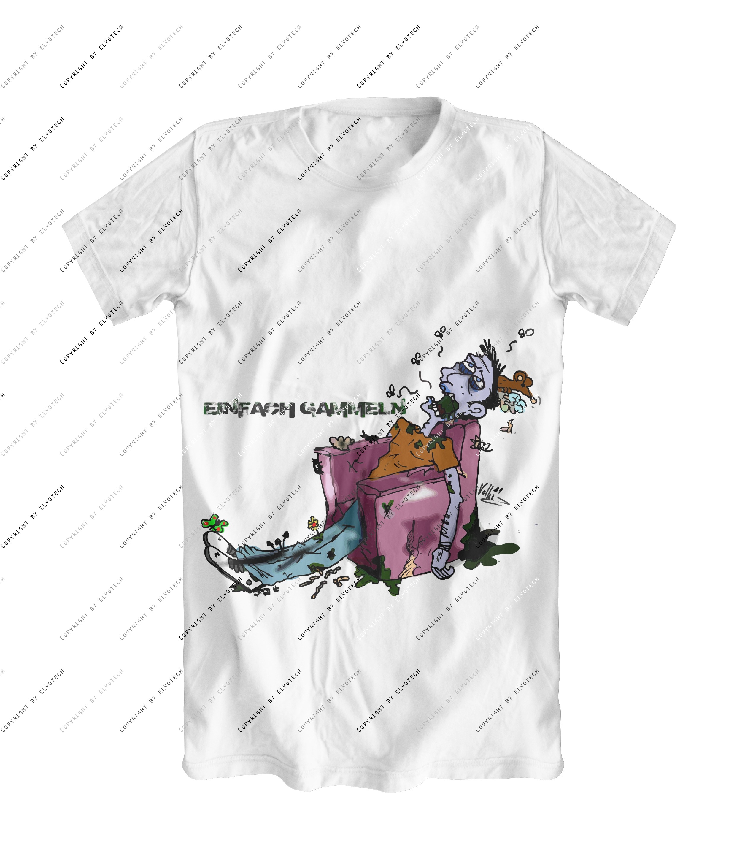 Ihr erhaltet ein T-Shirt in Weiss mit dem Druckbild wie in der Vorschau zu sehen.
