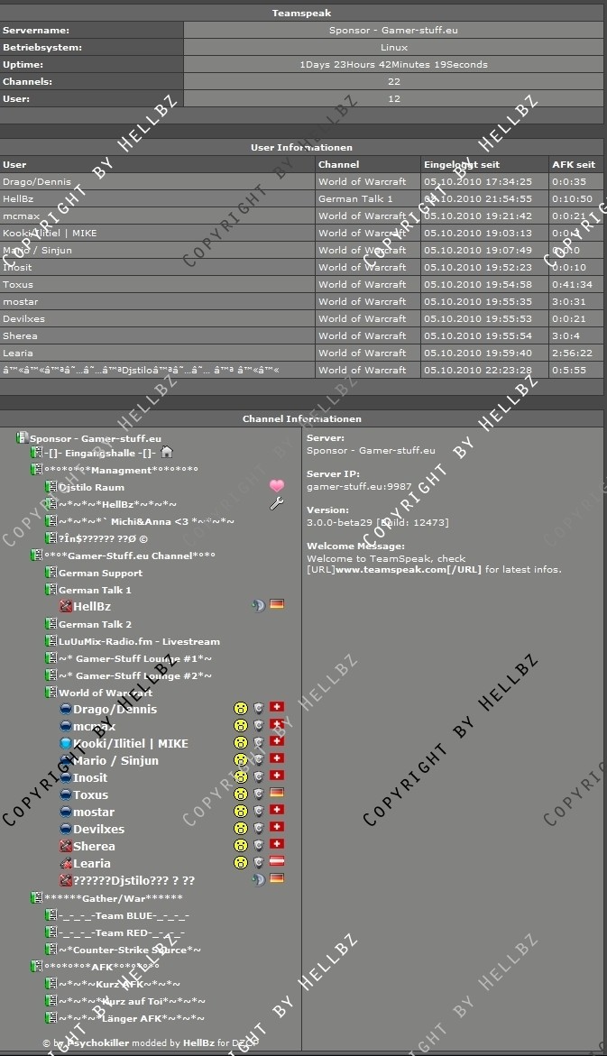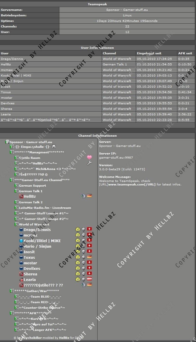 Ich biete den MOD nicht Hauptsächlich unter meinem Namen an, da der Viewer also das Grundscript von Psychokiller ist, der auch das einzige im mom geupdatede Teamspeak Webinterface codet.