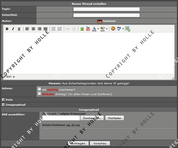 + ...können direkt Bilder im Forum während des Thread oder Post erstellens uploaden