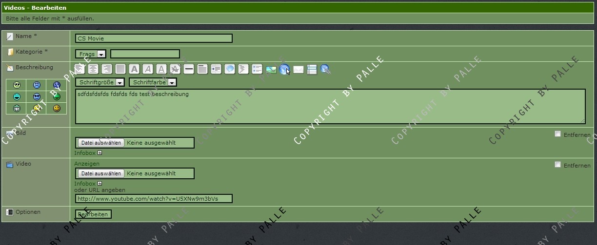 Man kann eigene Videos hochladen (flv Format) oder aber Youtube URLs angeben.