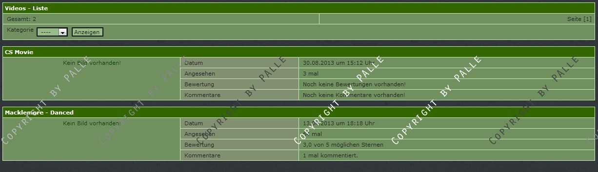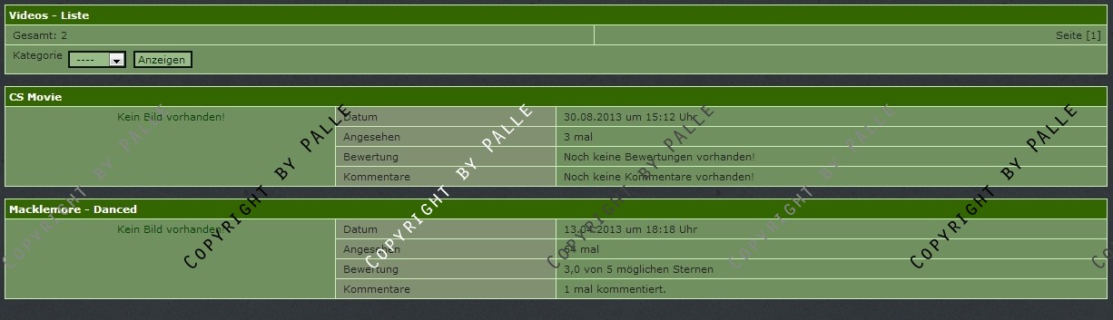 Es werden 3 Navlisten mitgeliefert (letzten X anzeigen, ein random video sowie das neuste video können ausgegeben werden).