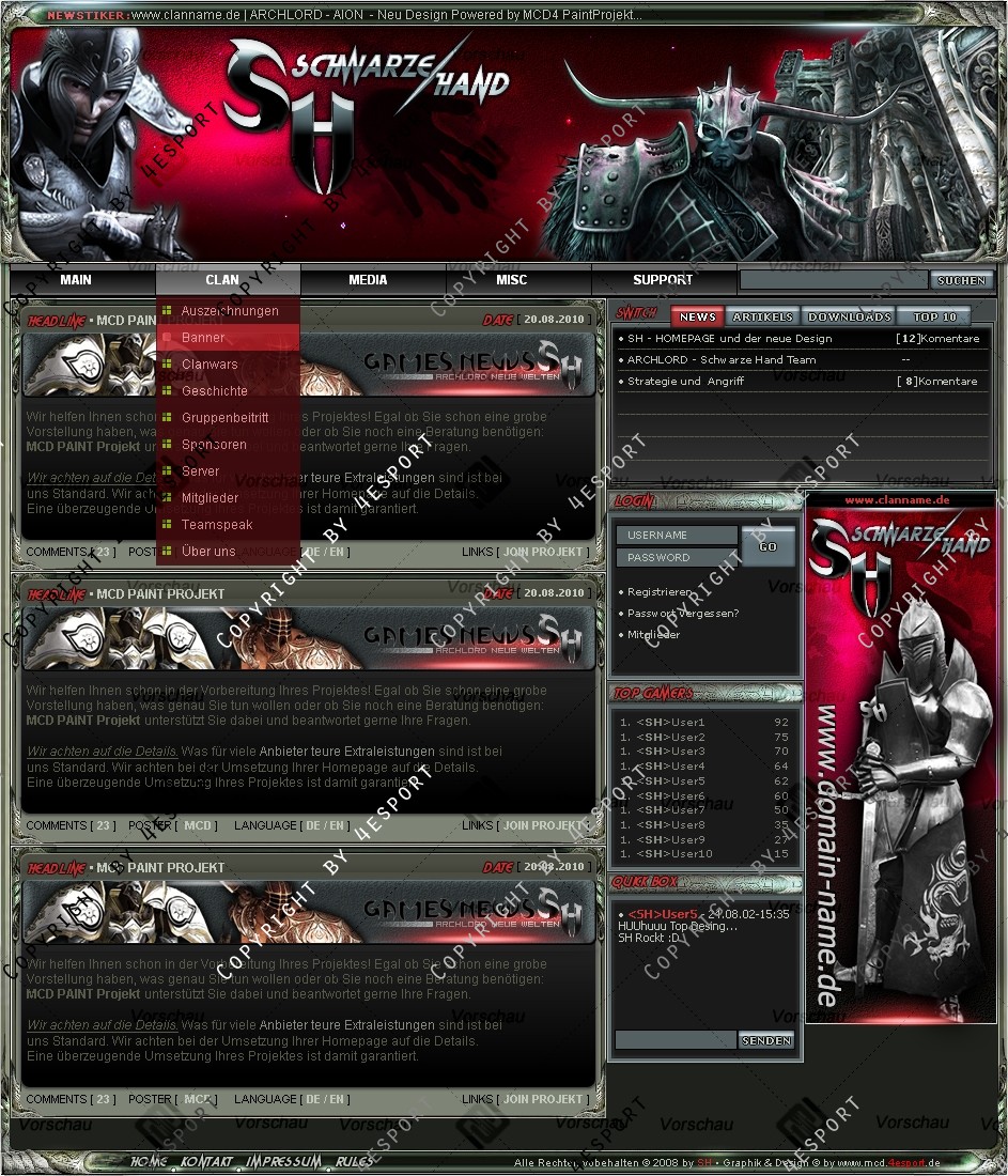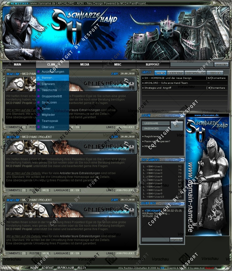 Wir können auch Ihre EXKLUSIVE Farbanpassung anfertigen bzw.: Neue LOGO CLAN NAME, Rahmen, Boxen Hintergründe, Titel-Fonts, Verlauf-Farben, Boxen Anordnung, usw....  das alles ist nur in EXKLUSIVE PREIS enthalten.