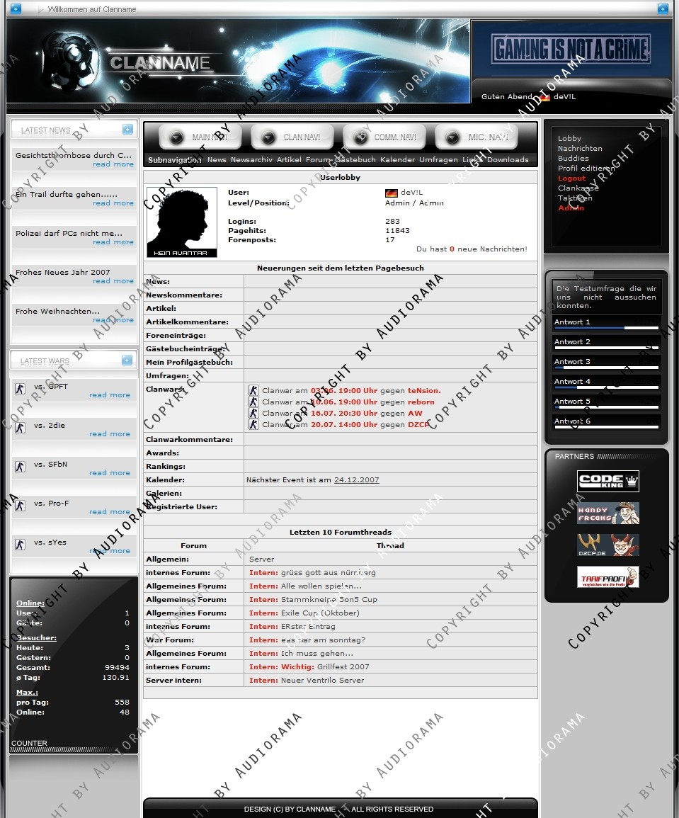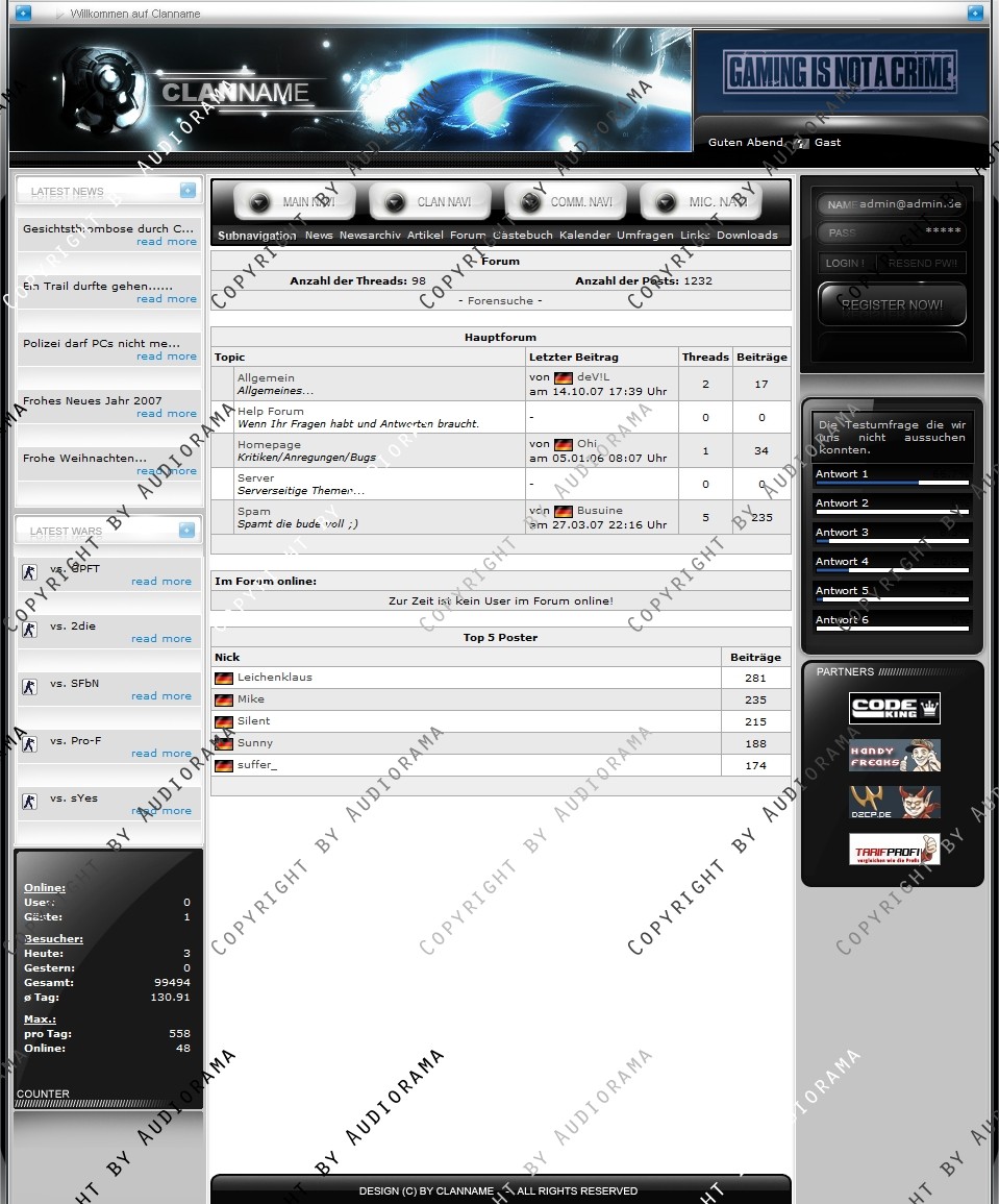 Du hast noch keinen Account auf ClanDesigns.de? Dann kannst du dich hier kostenlos registrieren!