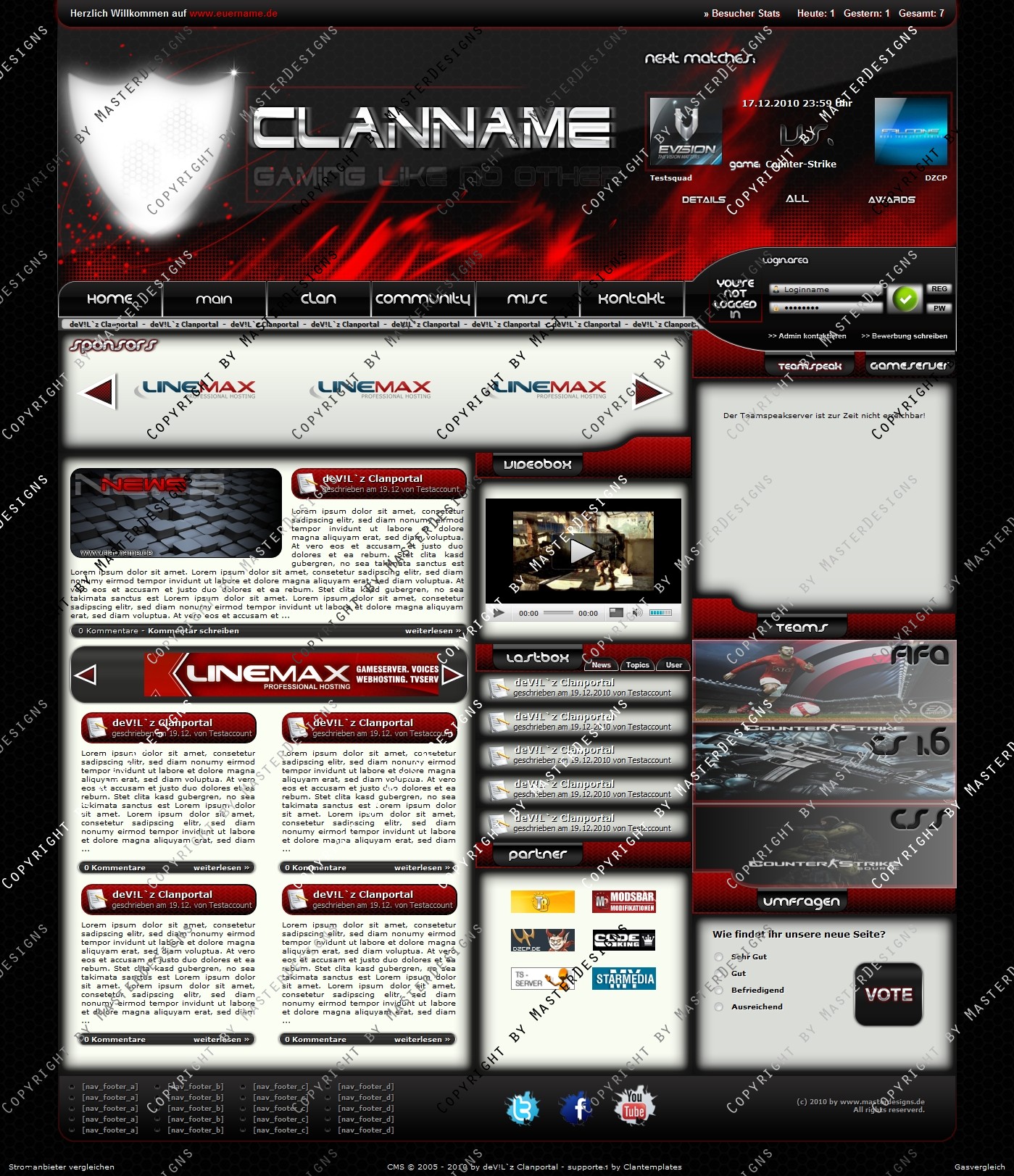 Du hast noch keinen Account auf ClanDesigns.de? Dann kannst du dich hier kostenlos registrieren!