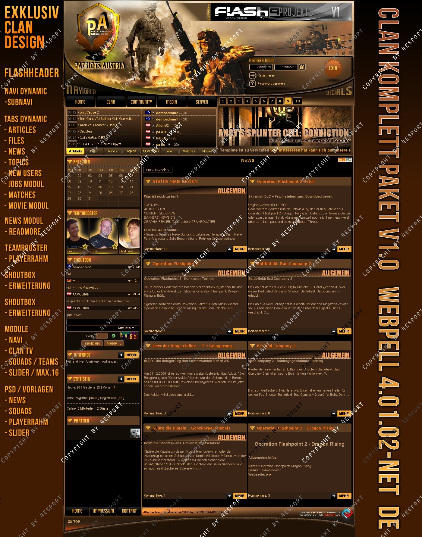 Design PSD Inkl. : News-Vorlage, Squads-Teams-Vorlage, Slider-vorlage, PA-Logo, Header- Links (hinter Logo der graphik)