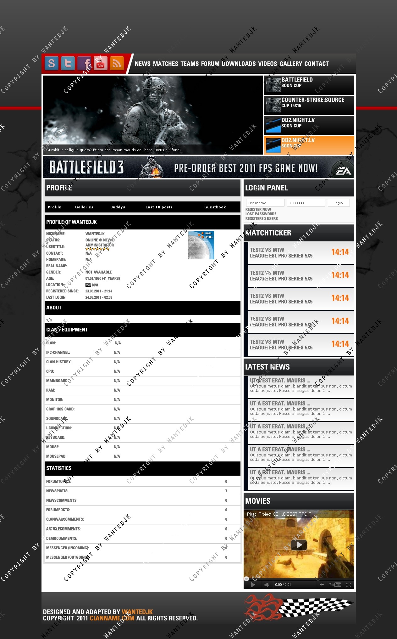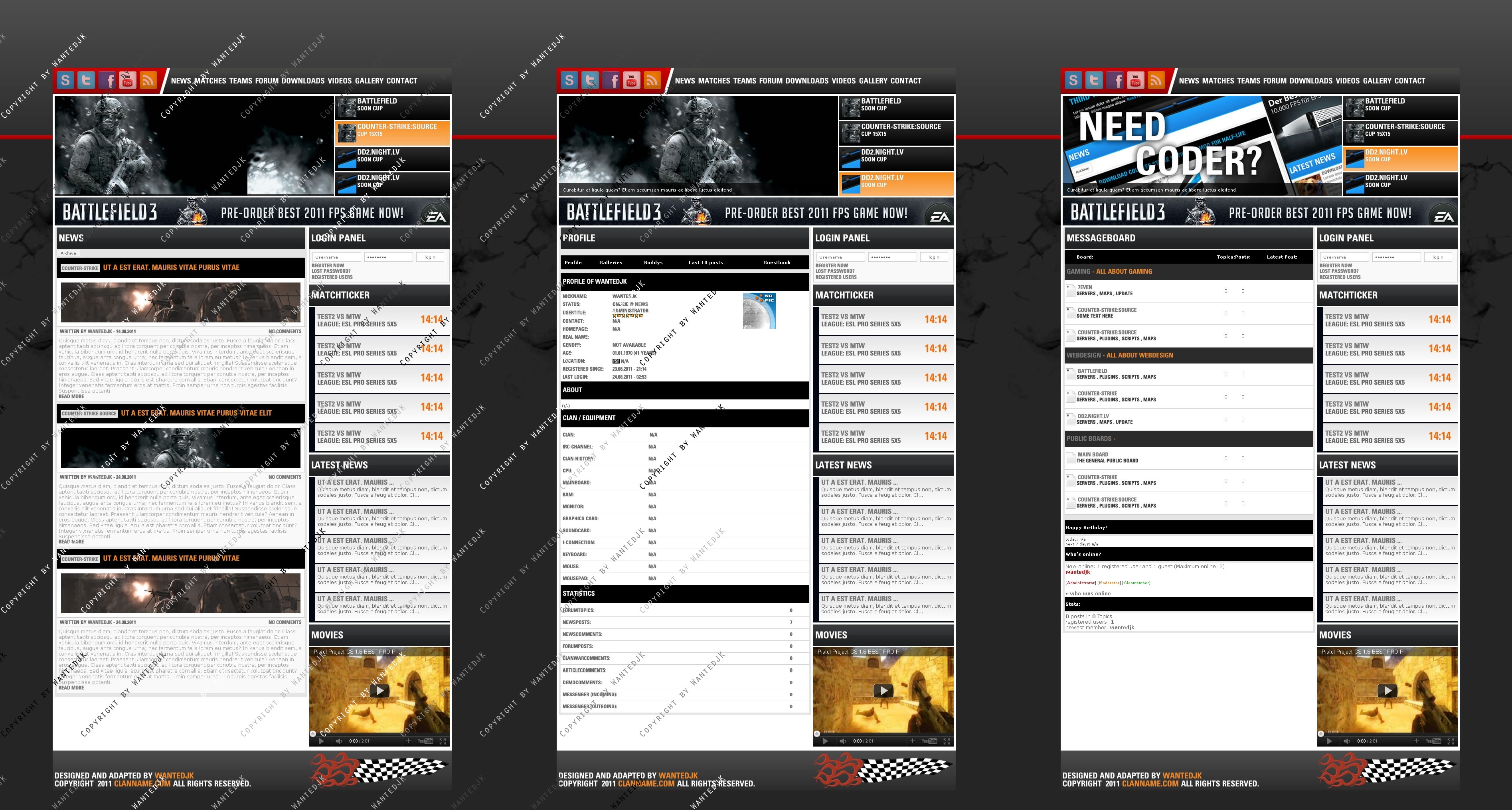 Include templates - News , Forum , Profile , Matches , Members