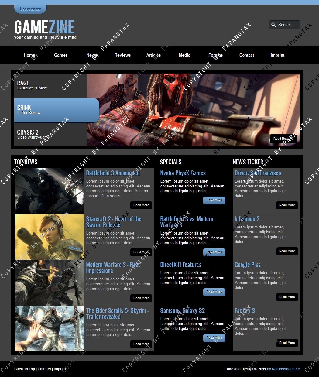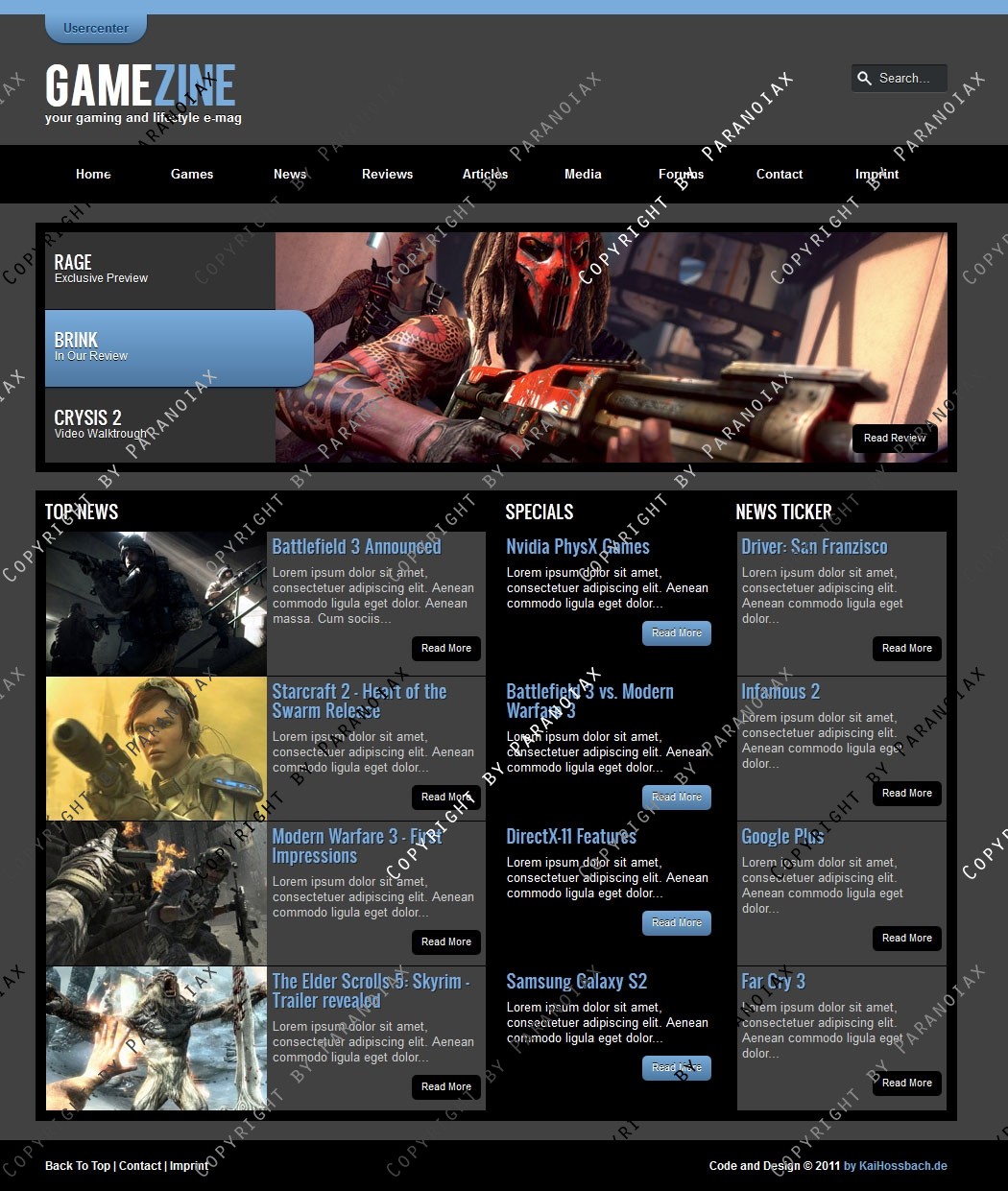 Auch als HTML Template erhältlich: http://www.clandesigns.de/templates/2748/gamezine-html5-css3-template/