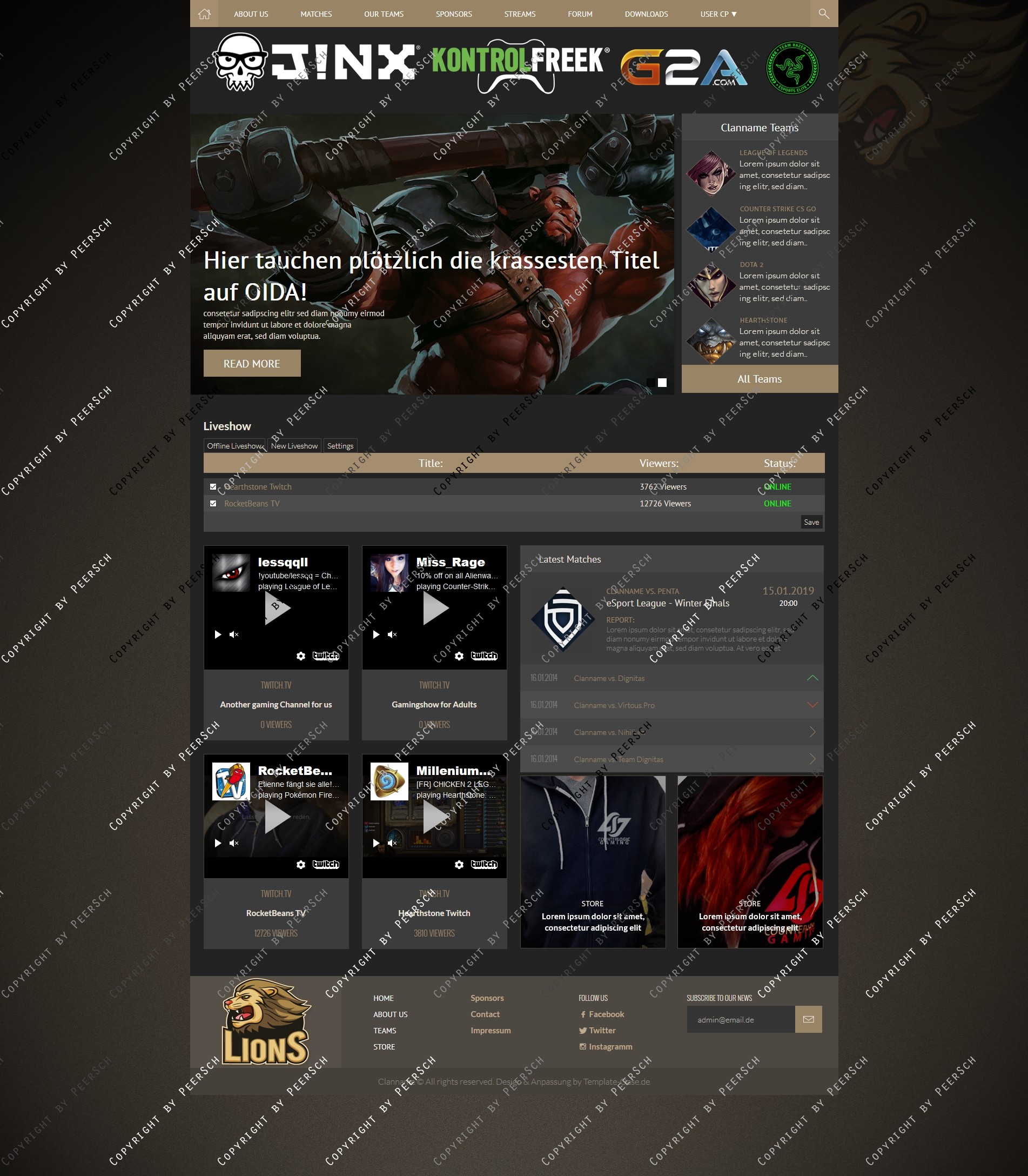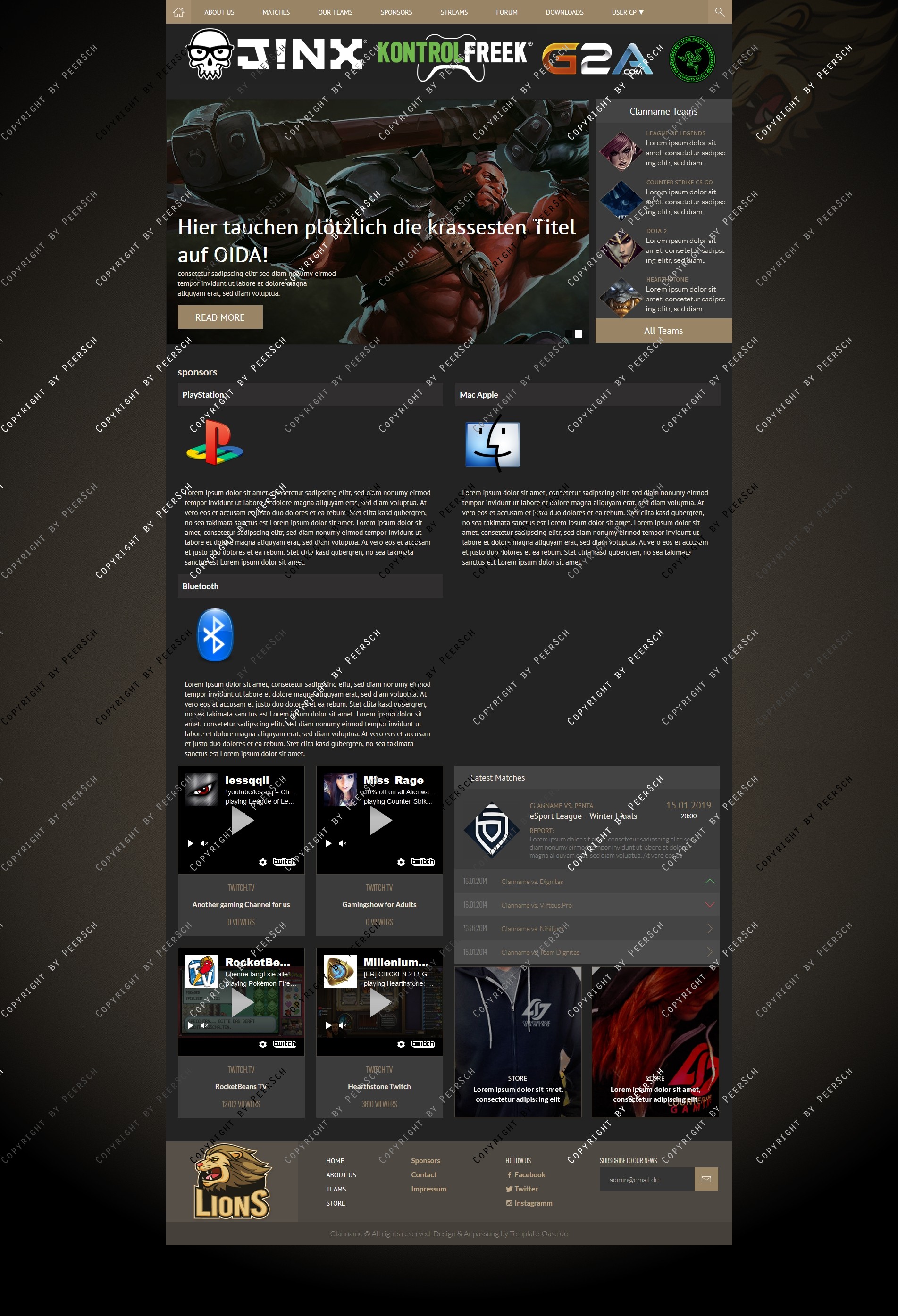 Im Preis mit inbegriffen sind außerdem die angepassten Unterseiten: Sponsoren, Squads, Squaddetail, News, Newscomments, Profil und Streams!