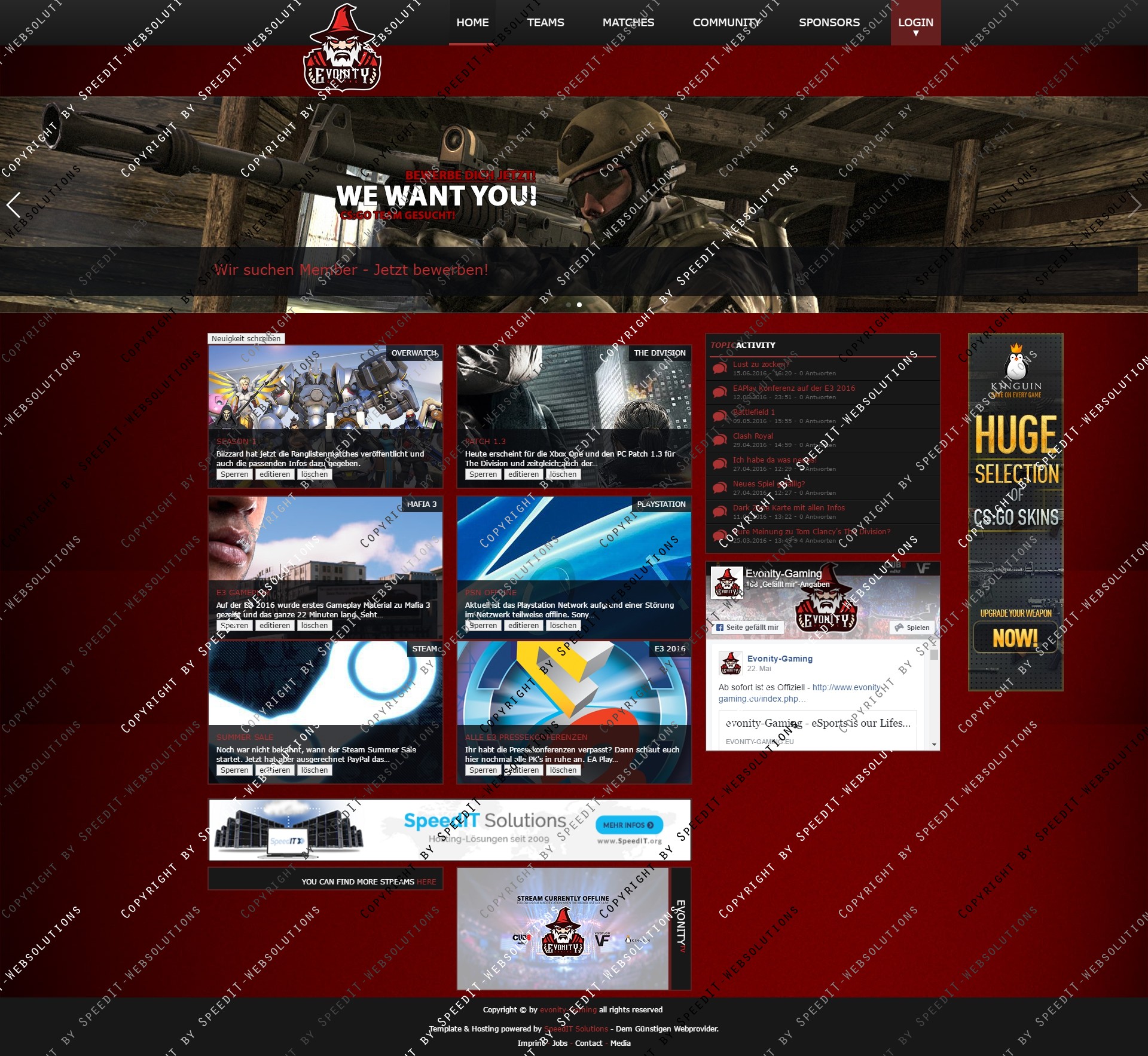 Für jeden Käufer unserer Templates steht ein 50% Gutschein für das Webhosting Sortiment auf SpeedIT zur Verfügung, kontaktieren Sie uns für den Gutschein einfach über das Ticketsystem.