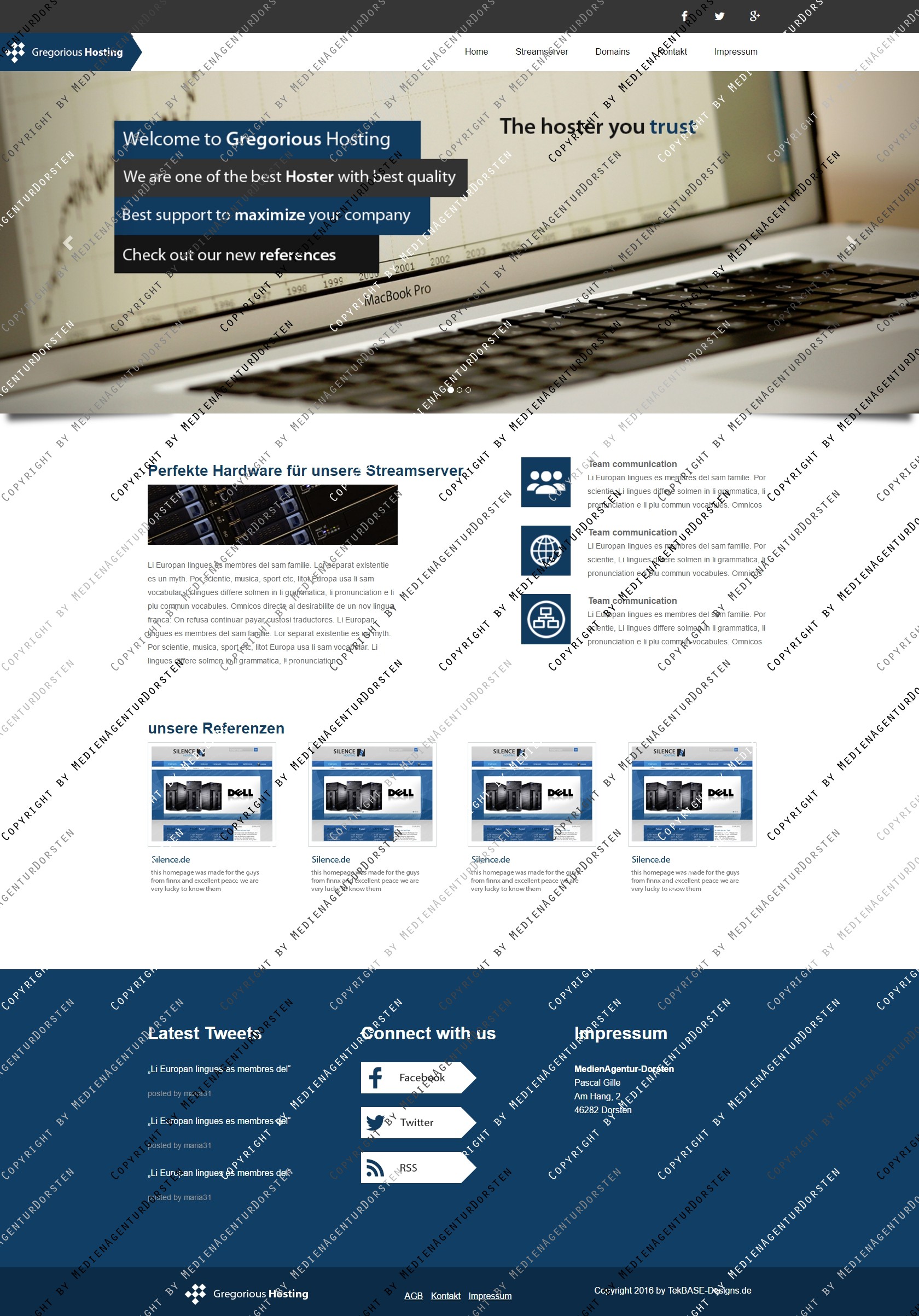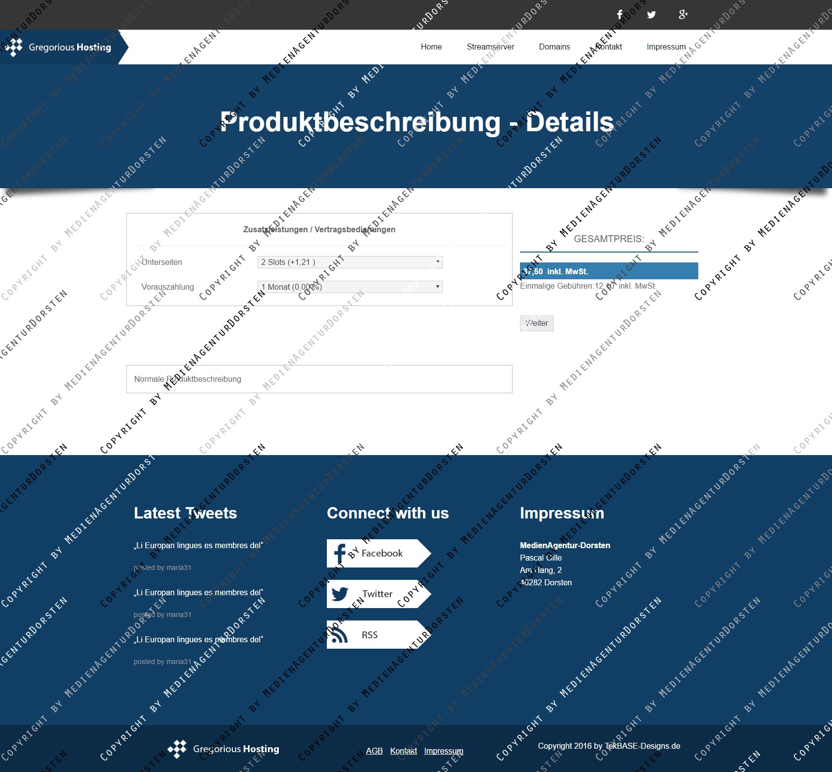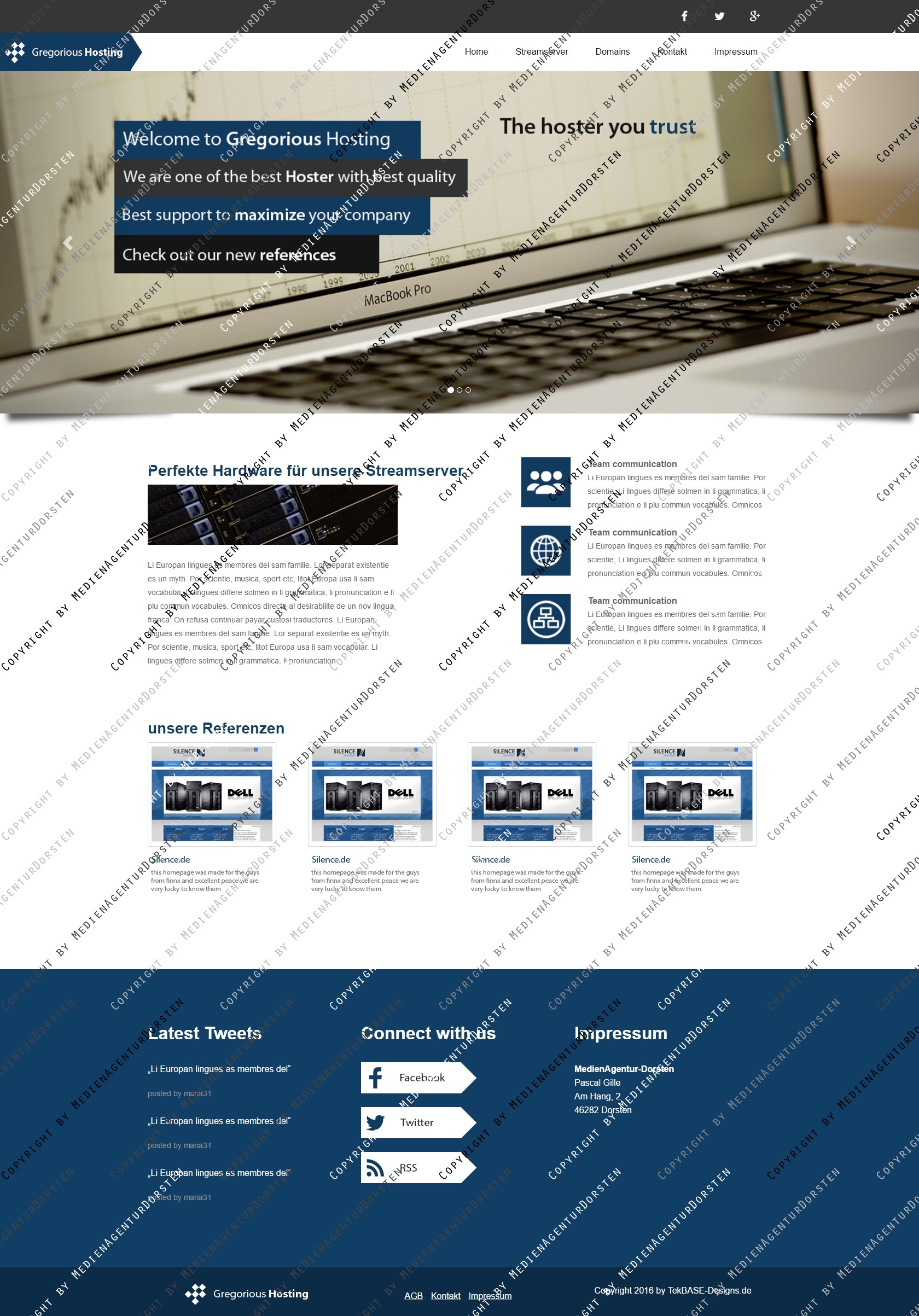 Hierbei handelt es sich um die Version 1.0 von unseren Gregorious Hosting Design. Das Design ist mittels Bootstrap Programmiert und ist Mobilfähig.