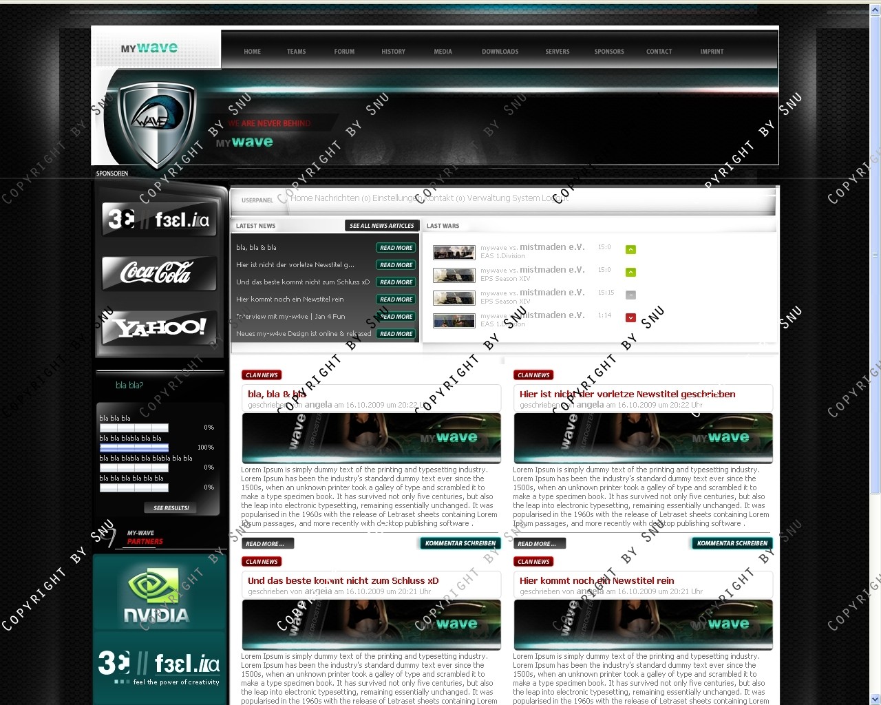 Ich verkaufe hier das Clandesign von Mywave(nein kein billiger 0815 freetemplate fake, das Original!). Angepasst ist das ganze an Clansphere 2009.0.2.