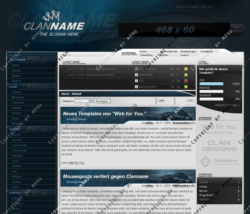Pacific ist ein neues Template von Web for You. aus der "Feder" von Manuel Wendt. Es passt zu allen Themen, wie z.B. Clans, Firmen, Schulklassen und anderen Communities.