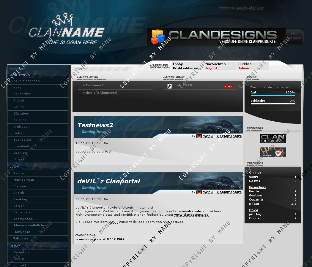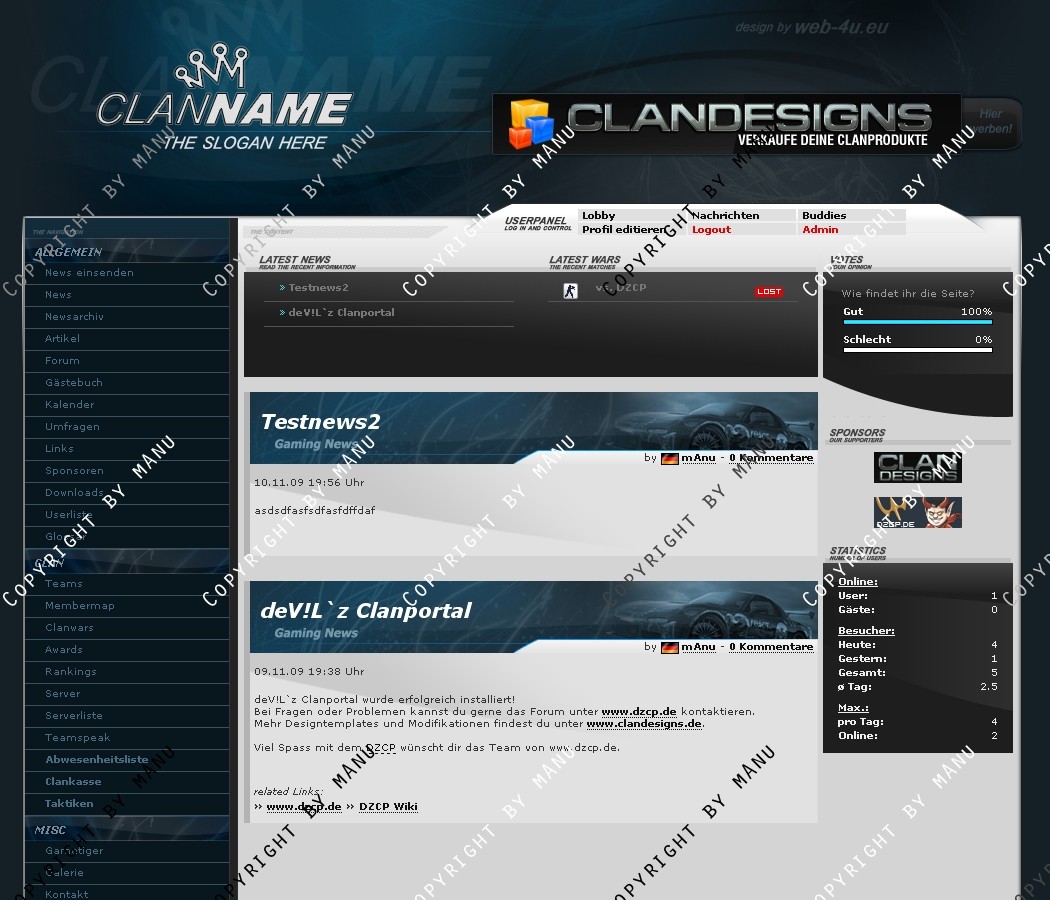 Das Template ist an das Content Management System DZCP angepasst und vollständig implementiert. Alle relevanten Elemente sind angepasst und zusätzliche Module sind auch erhältlich. Im Paket enthalten sind folgende Bestandteile: